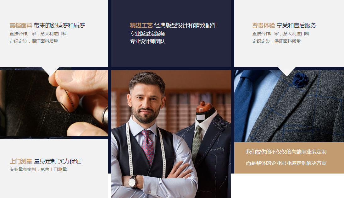 歡迎光臨重慶鴻浩服飾有限公司!主要針企事業(yè)單位的職業(yè)套裝、西服、大衣、襯衫的量身訂制服務(wù),以及個(gè)人的訂制服務(wù)。